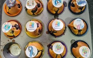 To mark the near end of Autism Awareness Month, the people we support from our Crossbrook home rolled up their sleeves and got busy in the kitchen baking blueberry muffins!